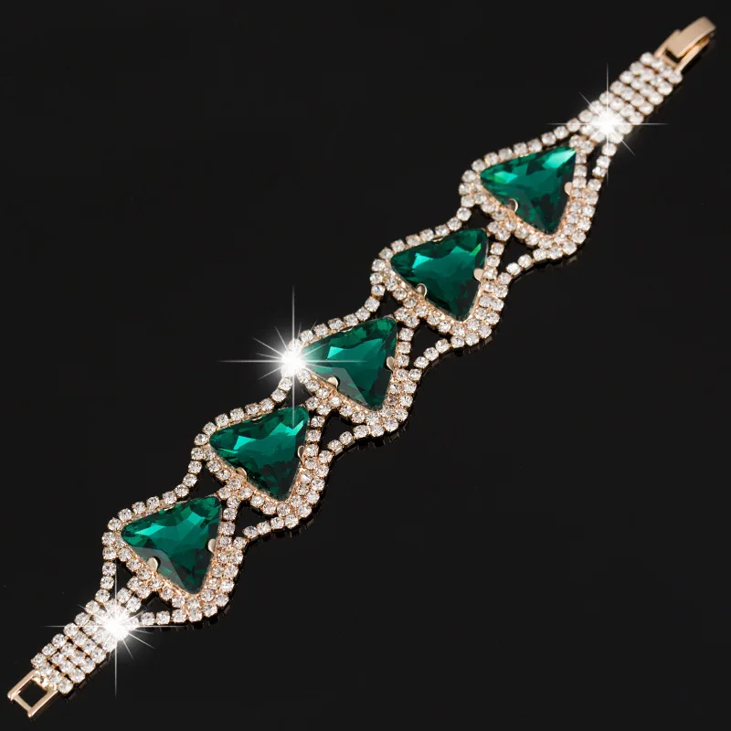 Promo New womens Fashion Rhinestone triangle crystal Bracelet Crystal Chain Bangle B030